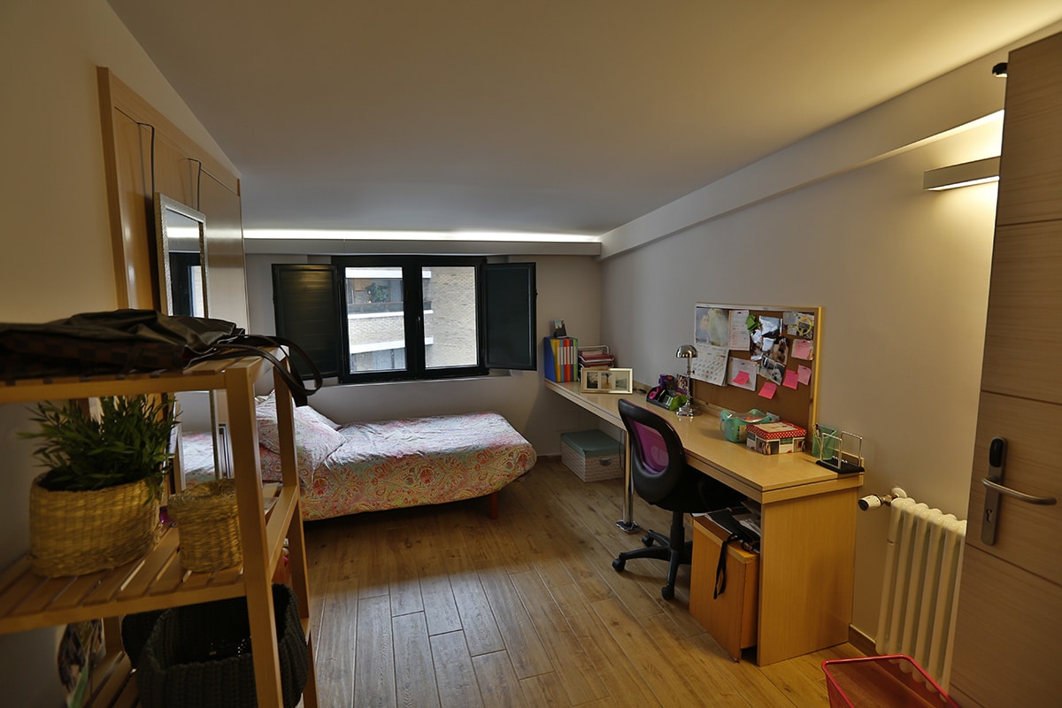 Todas las habitaciones cuentan con cama de 90 cm, escritorio, silla de estudio, mesita de noche, calefacción y acceso a Internet.