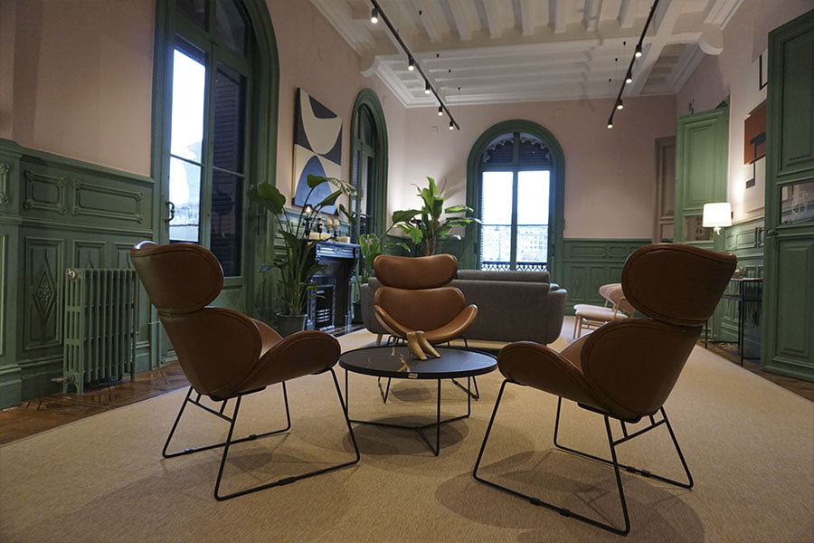 Disponemos de dos amplios salones con vistas a los jardines y Abandoibarra: el gran salón y el salón mirador. Podrás hacer uso también de la sala de visitas en el histórico salón árabe